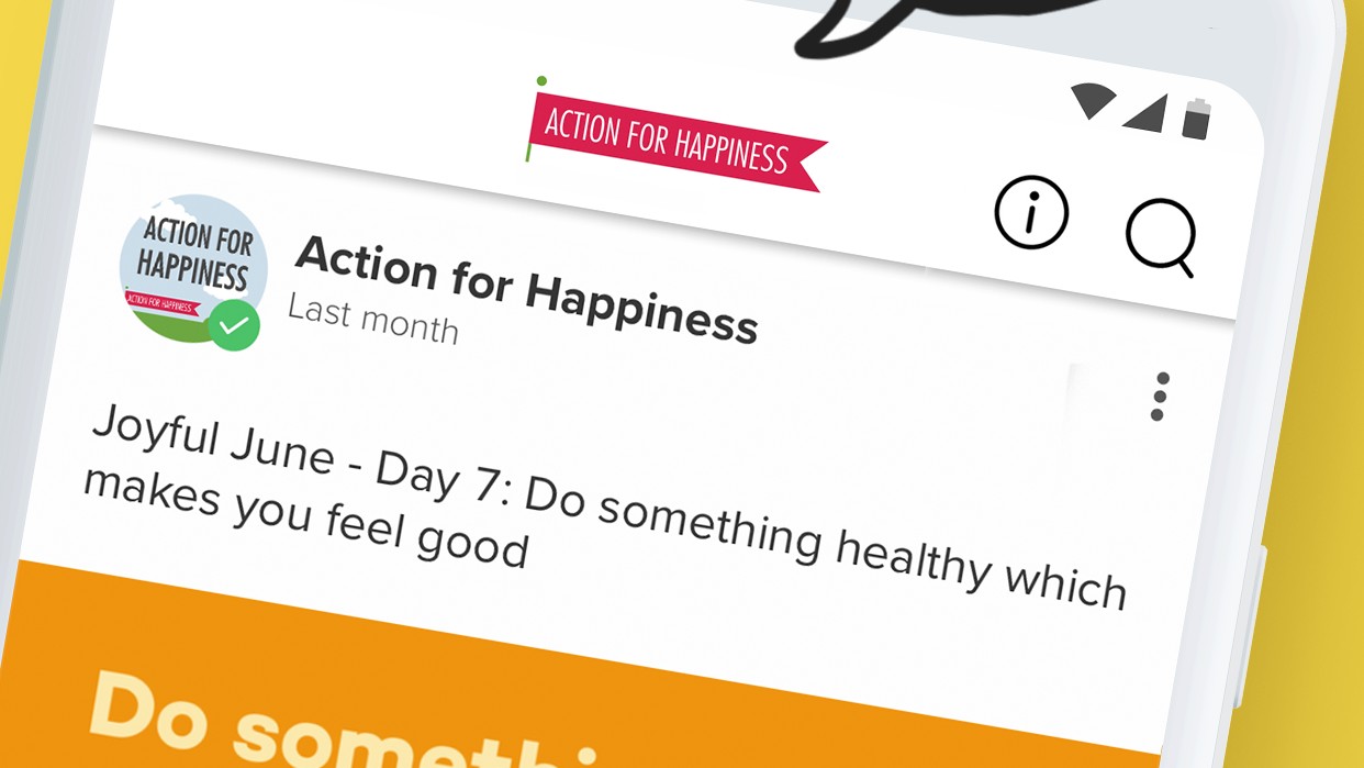 The Action for Happiness app is like having a personal action coach in your pocket who: