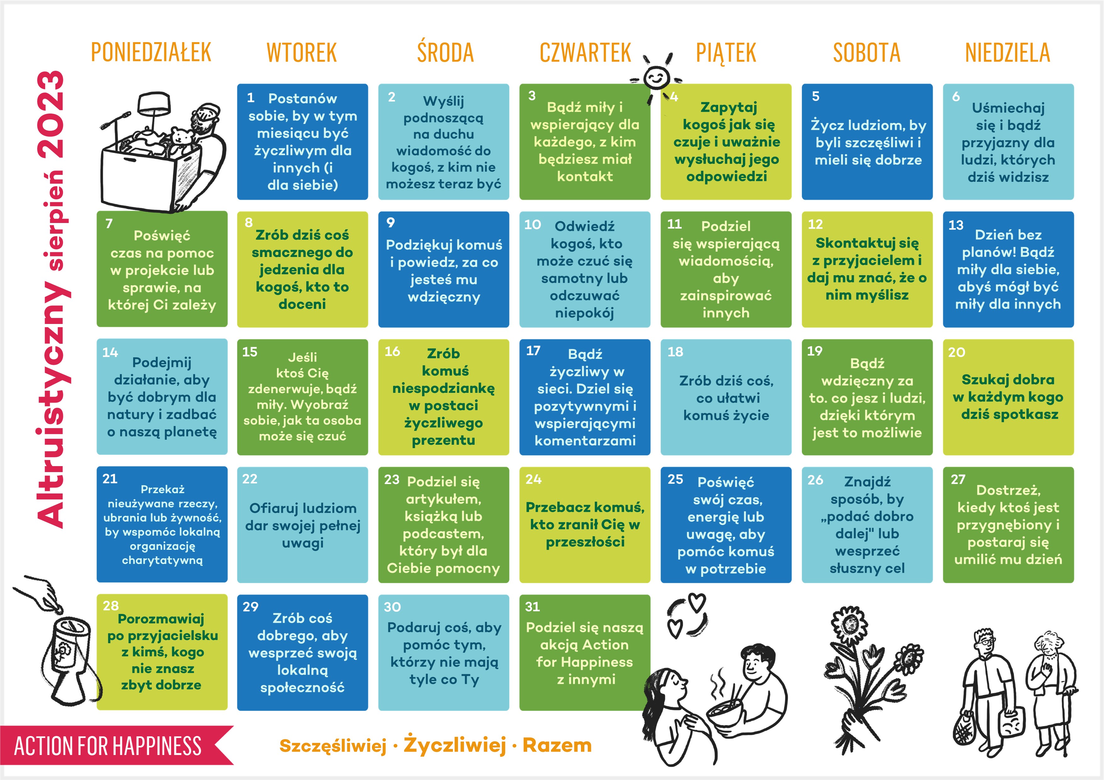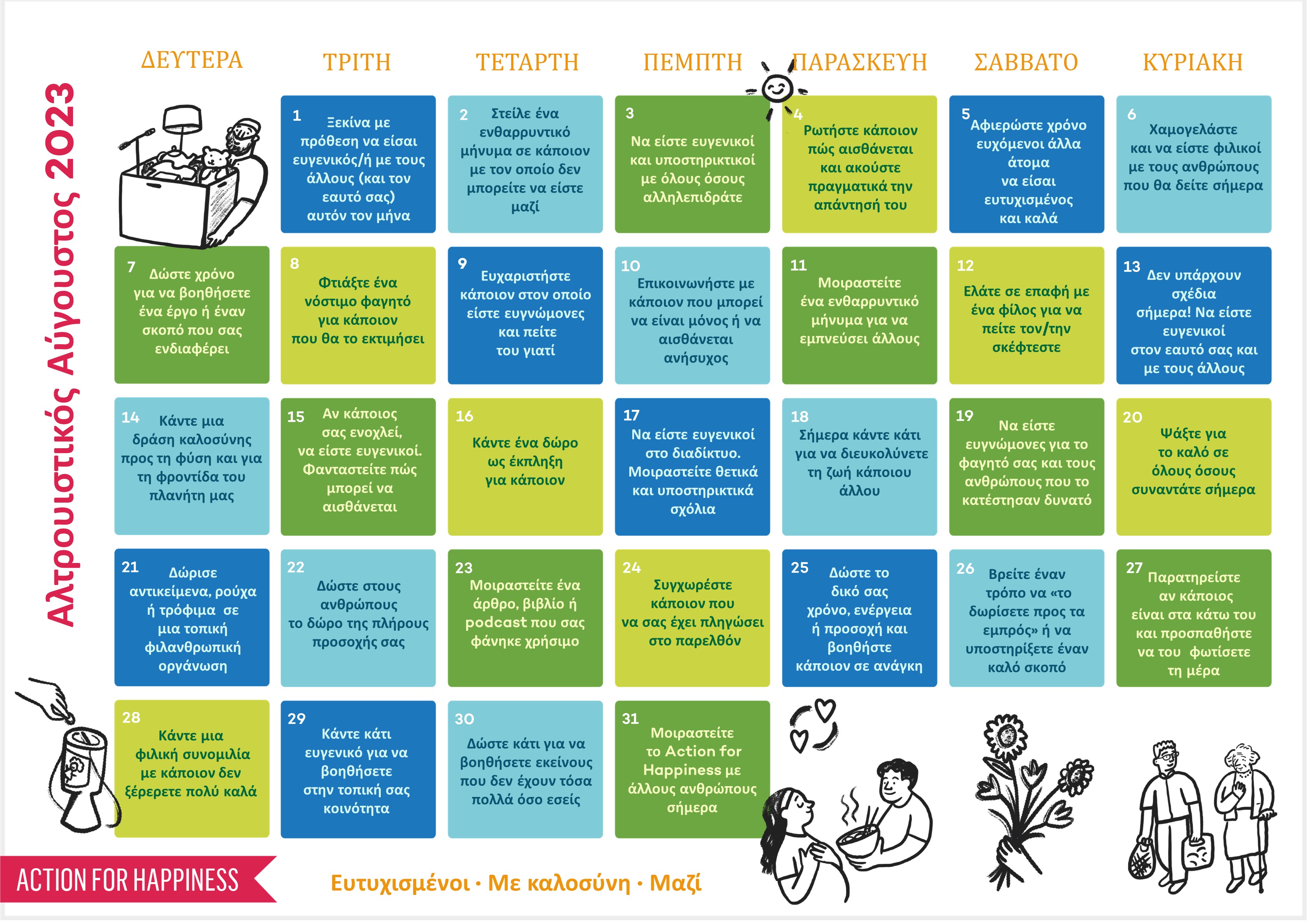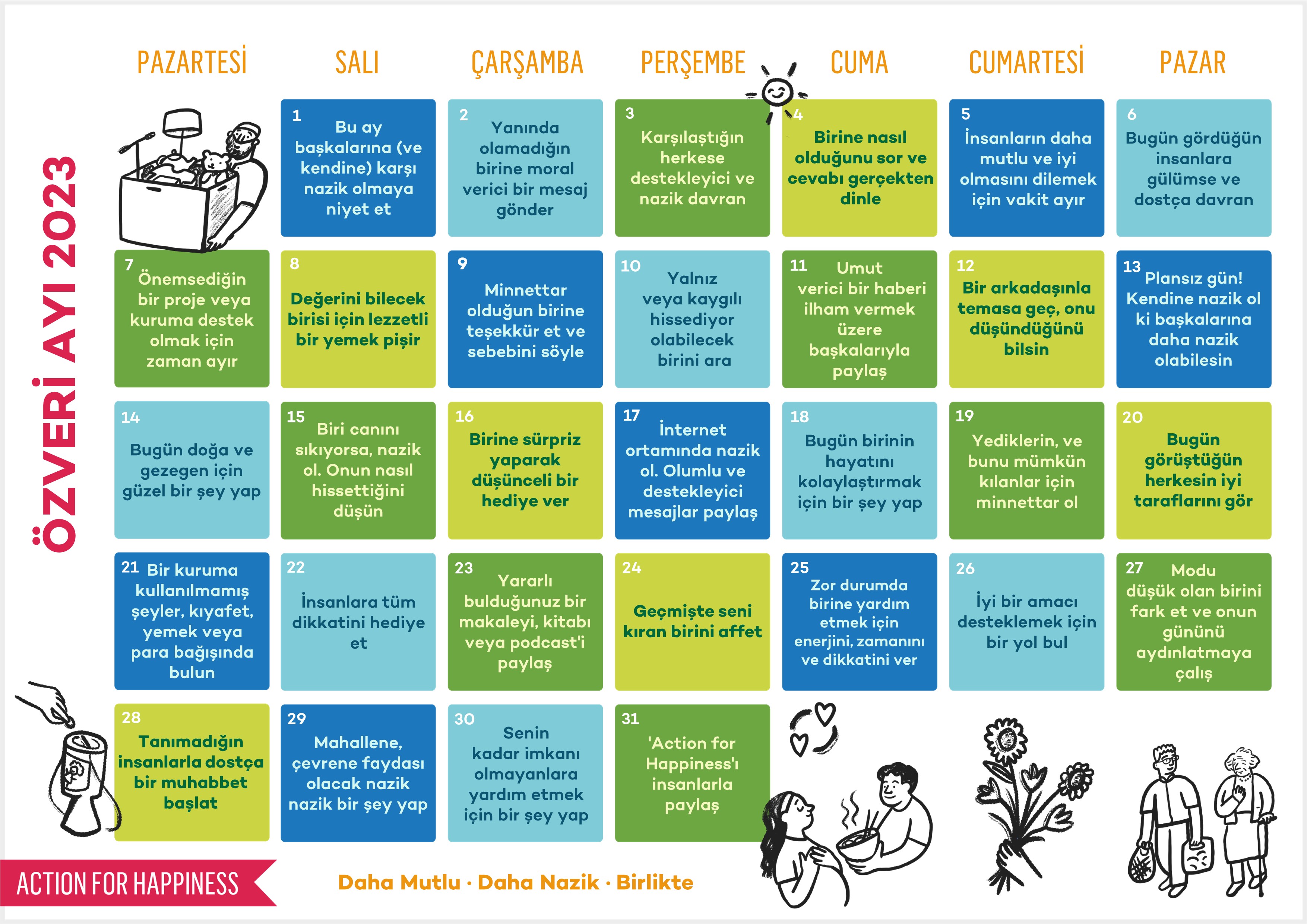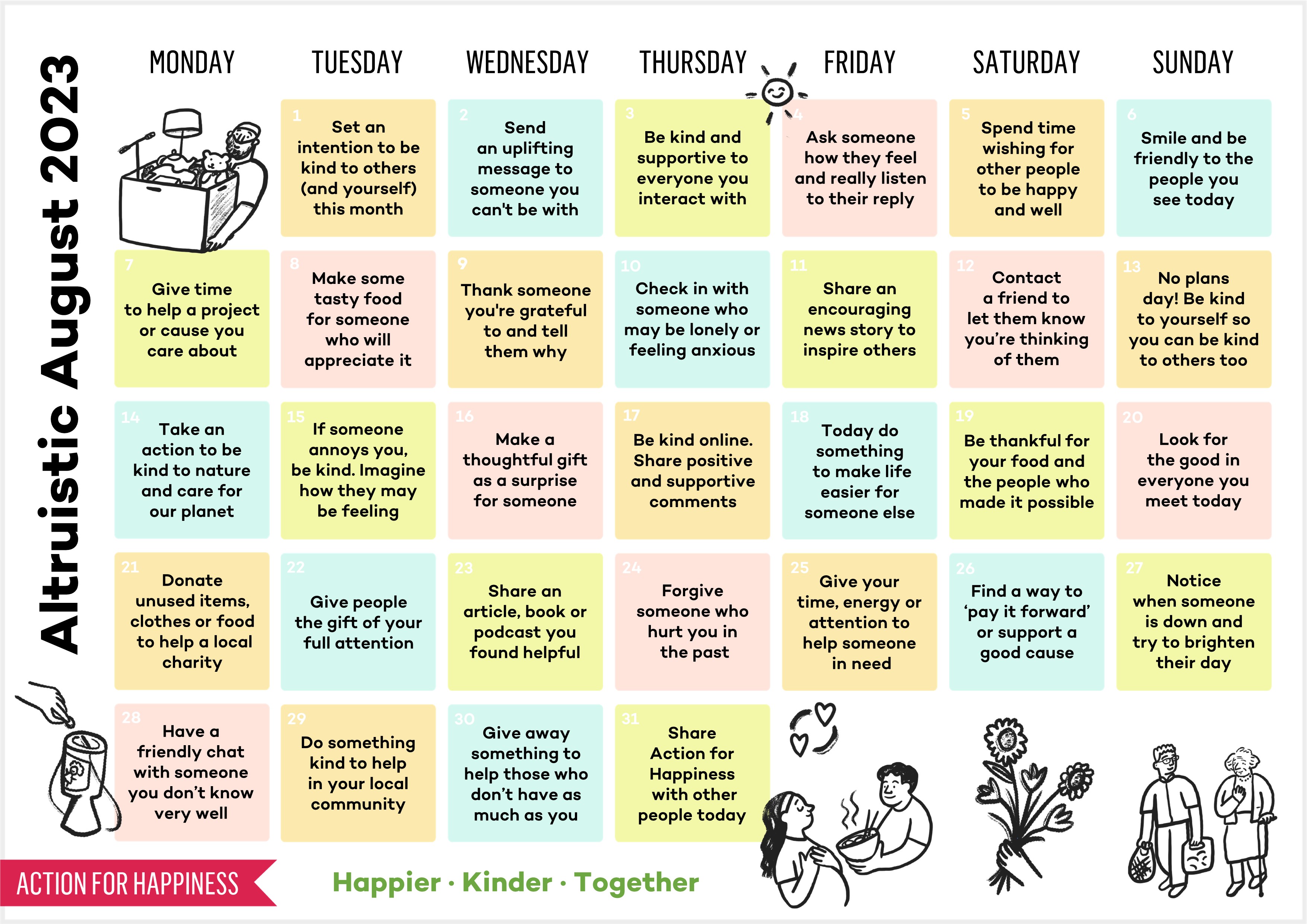 Do you want to help create a happier and kinder world? If so, please join our movement, add your pledge and we'll send you practical action ideas to make a difference. By choosing to Join, you trust Action for Happiness to take care of your personal information and agree to our Privacy Policy.