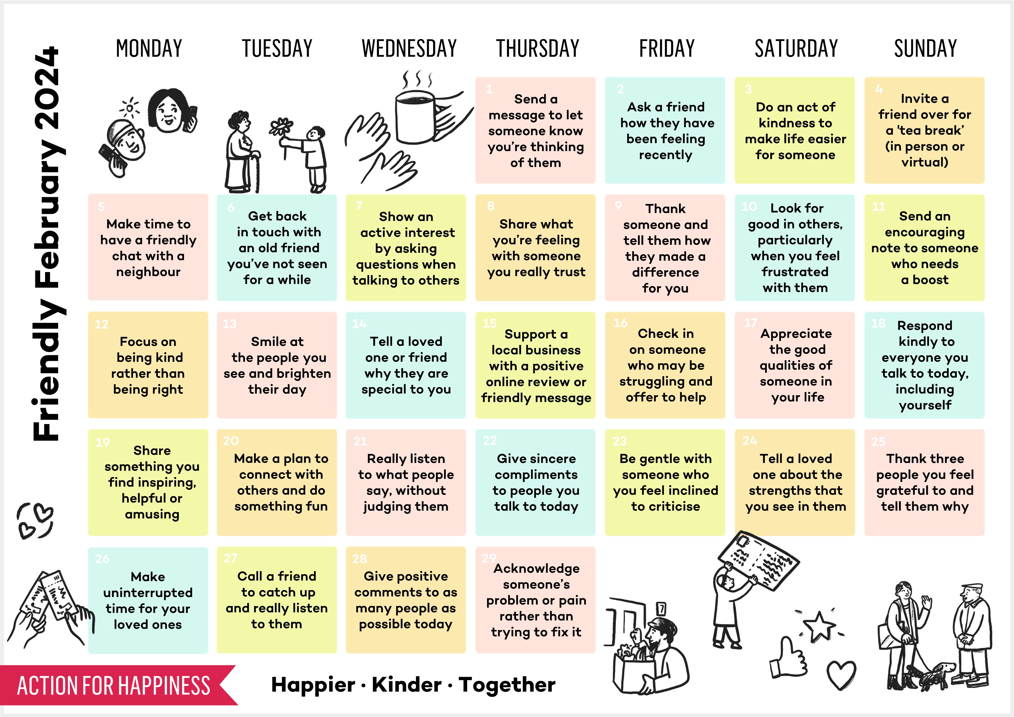 Do you want to help create a happier and kinder world? If so, please join our movement, add your pledge and we'll send you practical action ideas to make a difference. By choosing to Join, you trust Action for Happiness to take care of your personal information and agree to our Privacy Policy.