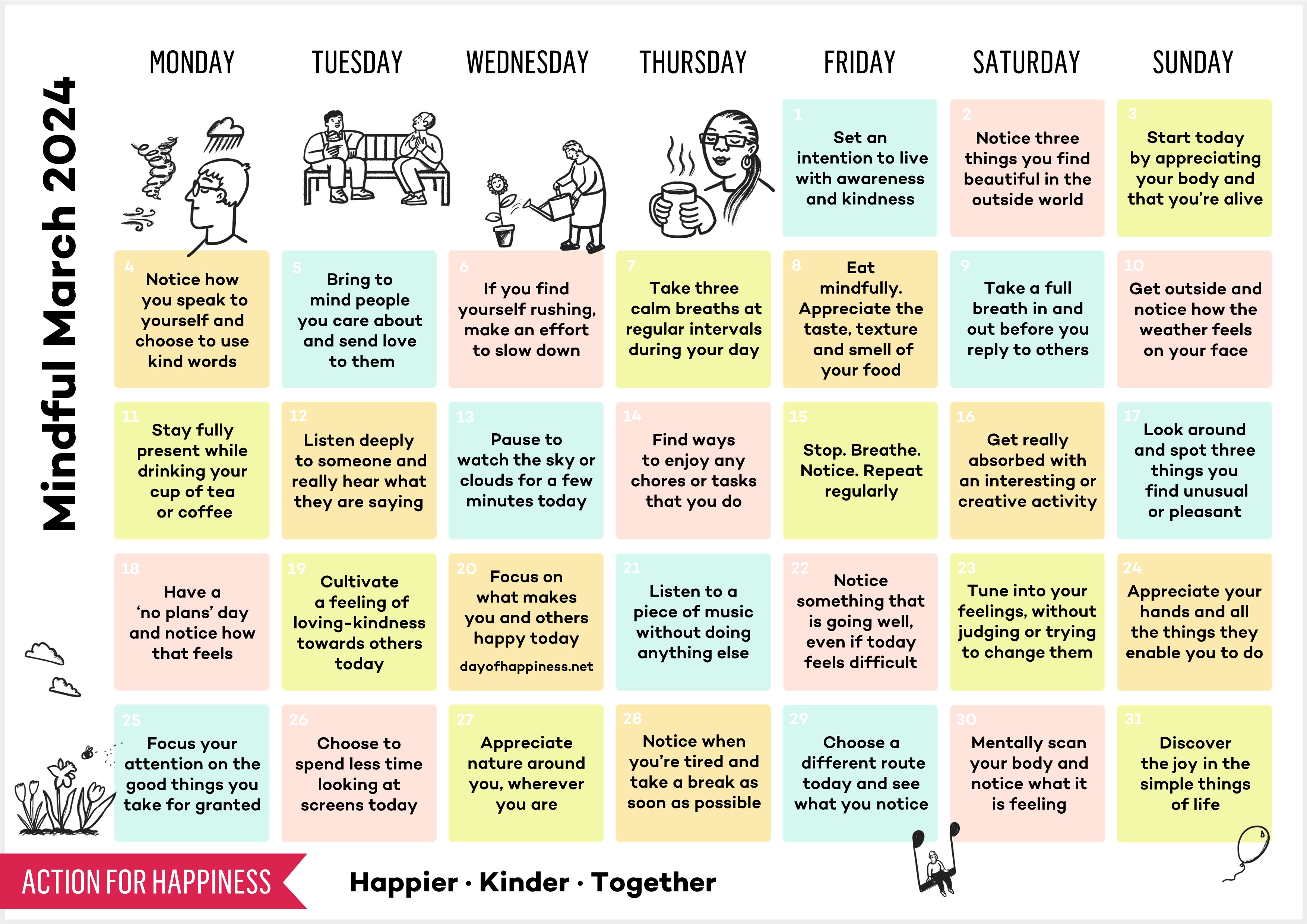 Do you want to help create a happier and kinder world? If so, please join our movement, add your pledge and we'll send you practical action ideas to make a difference. By choosing to Join, you trust Action for Happiness to take care of your personal information and agree to our Privacy Policy.